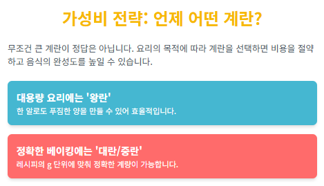 가격과 용도 모두 잡는 계란 고르기: 크기별 특징 완벽 분석