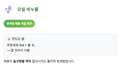 오일 비누물은 해충을 직접적으로 제어하는 가장 간단하면서도 효과적인 방법 중 하나입니다. 비눗물은 해충의 몸을 감싸 숨구멍을 막아 질식하게 만들며, 특히 몸이 부드러운 해충들에게 치명적인 결과를 가져옵니다.