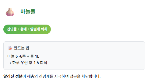 - 알리신은 해충의 신경계를 자극해서 먹이 활동을 방해하고, 특유의 냄새로 해충이 가까이 오지 못하게 합니다. 진딧물이나 응애, 잎벌레 등 작은 해충에게 특히 효과적이에요.