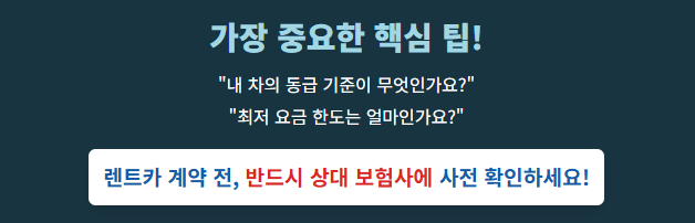 나중에 분쟁을 피하고 합당한 보상을 받으려면, 렌터카 계약 전에 반드시 상대 보험사에 렌트 가능 여부와 구체적인 인정 기준을 미리 확인하는 게 매우 중요합니다.