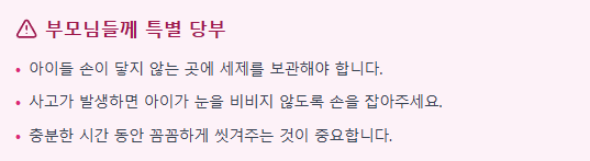 사고가 났을 때는 당황하지 말고 곧장 흐르는 물에서 15분간 꼼꼼하게 눈을 씻어주세요. 특히 부모님들은 아이들 손이 닿지 않는 곳에 세제를 보관해야 하며, 만약 일이 생겼을 땐 아이가 눈을 비비지 않도록 손을 잡아주고 충분히 씻겨주는 것이 중요합니다.