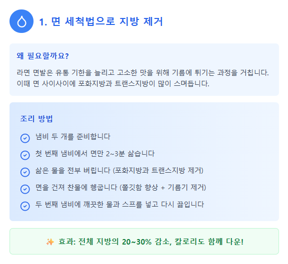 오늘은 과학적인 원리를 이용해 라면의 기름기를 효과적으로 줄이고 건강까지 챙길 수 있는 방법을 소개해 보려 합니다.