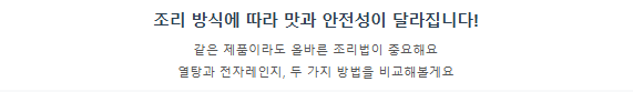 편리함만을 생각하다 기본을 놓치면 건강을 해칠 수 있다는 점을 꼭 명심해야 합니다. 조리법의 기본을 지키는 것만이 맛과 건강, 두 마리 토끼를 잡는 가장 확실한 방법이죠.