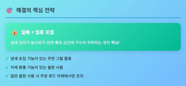 냄새 포집 그릴이 없어도 걱정하지 마세요. 다음의 3단계 봉쇄 작전으로 냄새 확산을 최소화할 수 있습니다.