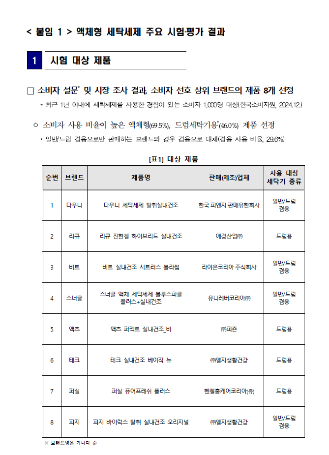 일상에서 흔히 사용하는 액체형 세탁세제, 여러분은 어떤 기준으로 선택하시나요? 대부분 '어떤 제품이든 빨래는 잘 될 거야'라고 생각하곤 합니다. 하지만 우리가 매일 마주하는 다양한 오염에 대한 세척력은 제품마다 정말 천차만별입니다. 한국소비자원이 소비자 선호도가 높은 8개 액체형 세탁세제를 대상으로 실시한 품질 비교 시험 결과를 보면, 브랜드와 가격을 넘어선 세제의 '진정한 실력'을 명확히 알 수 있습니다.