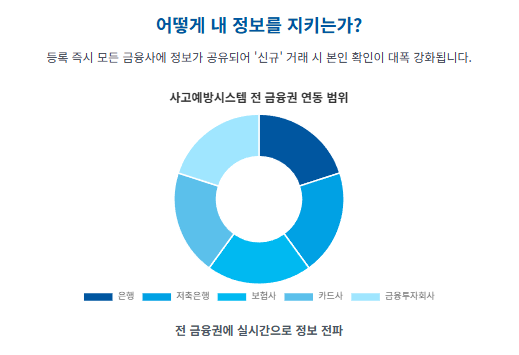 - 이미 개인정보가 유출된 상황이라도 이 시스템을 통해 명의 도용에 의한 2차 피해를 미리 막는 것이 가장 정확하고 확실한 방법입니다.