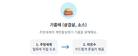 기름 얼룩은 단순히 물로 빨아서는 잘 지워지지 않아 골치 아픈데요. 옷에 기름이 배면 섬유가 눅진해져서 얼룩이 더 오래 남게 됩니다. 이런 경우, 뜨거운 물로 헹구는 대신 주방 세제나 샴푸처럼 기름을 분해하는 제품이 큰 도움이 돼요.