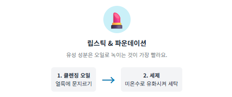 - 립스틱은 유분과 색소가 섞여 있어서 지우기 쉽지 않죠. 이럴 때는 클렌징 오일이나 면도 크림을 묻혀 얼룩을 부드럽게 닦아내면 유분이 분해되어 얼룩이 쉽게 지워집니다.