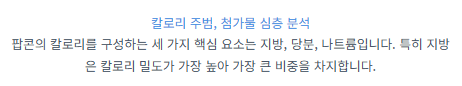 이처럼 팝콘을 고칼로리 음식으로 만드는 핵심 원인은 바로 이런 첨가물입니다.