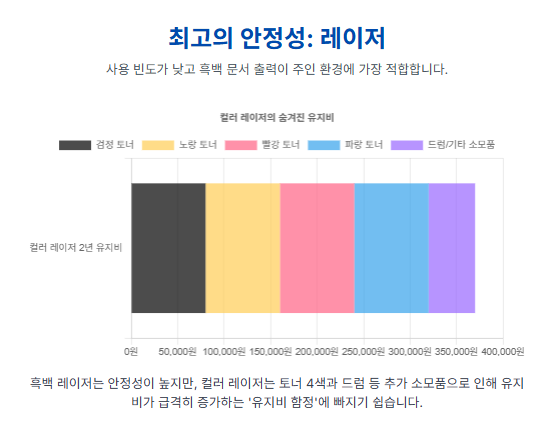 2. 잉크냐 토너냐: ‘페이지당 비용’이 진짜 유지비