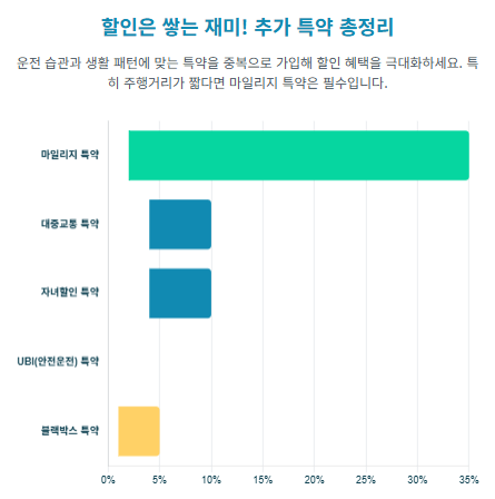 연령과 경력 한정으로 초기에 보험료를 낮췄다면, 이제는 마일리지, 블랙박스 등 다양한 할인 특약을 챙기면서 추가 절약을 습관처럼 이어가는 것이 좋습니다. 특히 20대 운전자라면, 보험사들이 적극적으로 권장하는 안전 운전 관련 특약을 잘 활용하면 높은 보험료 부담을 조금이나마 덜 수 있습니다.