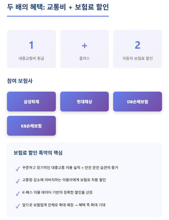 2024년 5월 출시 이후 폭발적인 반응을 얻으며 이미 국민 카드로 자리매김했는데요. 2025년 10월 22일, 국토부와 보험업계가 맺은 역사적인 업무협약 덕분에 이제는 대중교통비 절감의 원래 기능을 넘어 자동차 보험료 할인이라는 새로운 금융 혜택까지 제공하게 됐습니다.